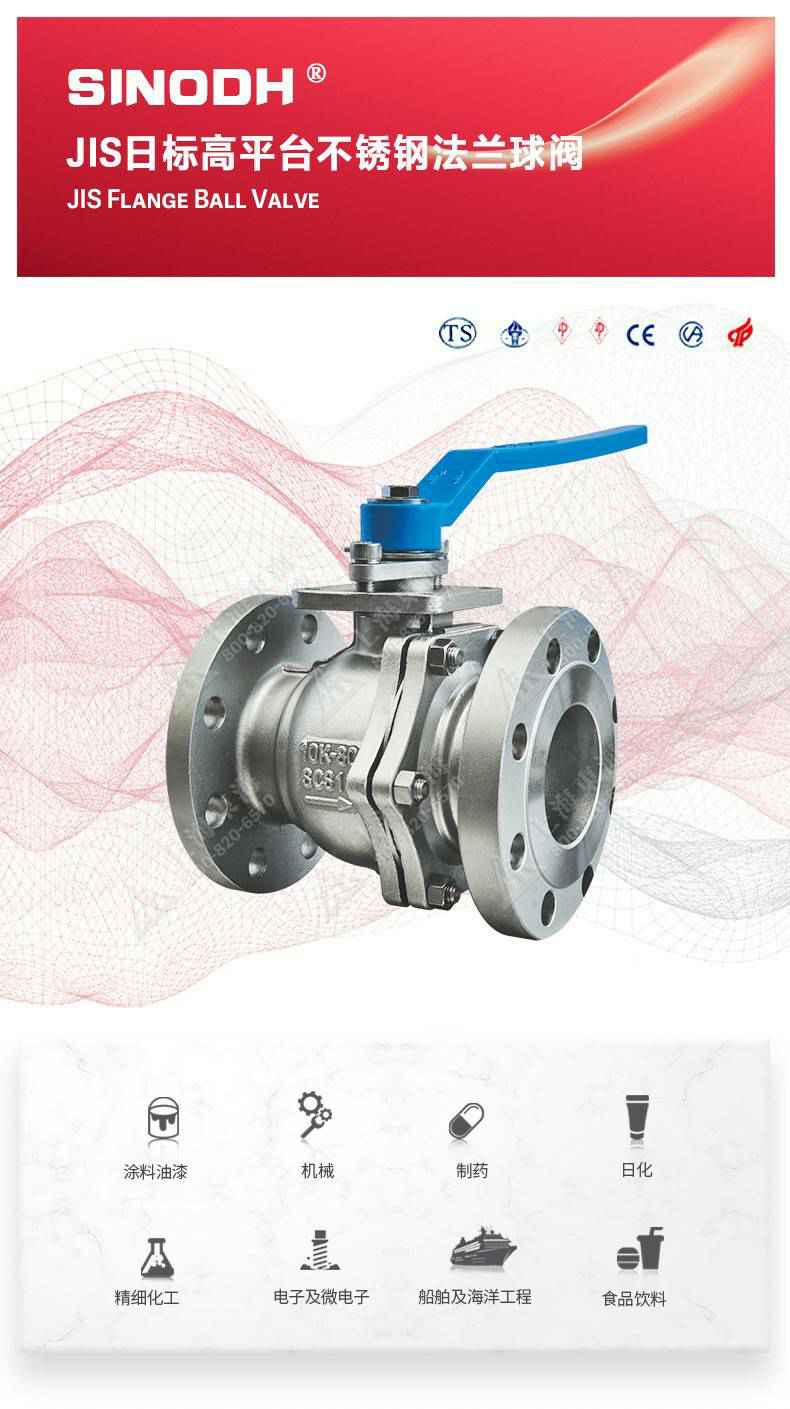 JIS日标高平台不锈钢法兰球阀,为上海明诚进口商品贸易有限公司自主研发生产本产品设计制造标准符合J1 SB2071标准,该产品的球体(密封件)是浮动的,在介质压力作用下,球体能产生-定的位移并紧压在出口端的密封面上,保证出口端密封。适用于水、溶剂、酸和天然气等一般工业介质,也适用于工况恶劣的介质,如氧气、过氧化氢、乙烯等介质。